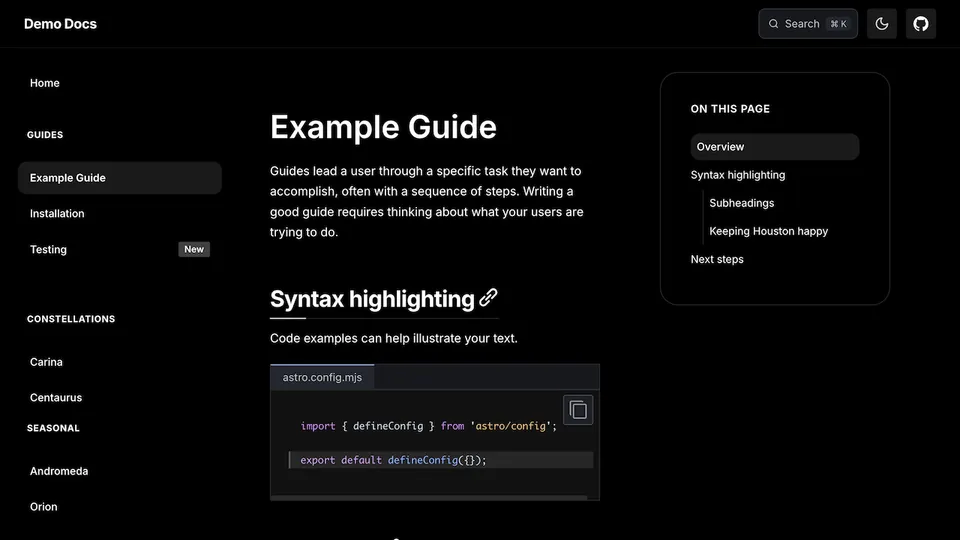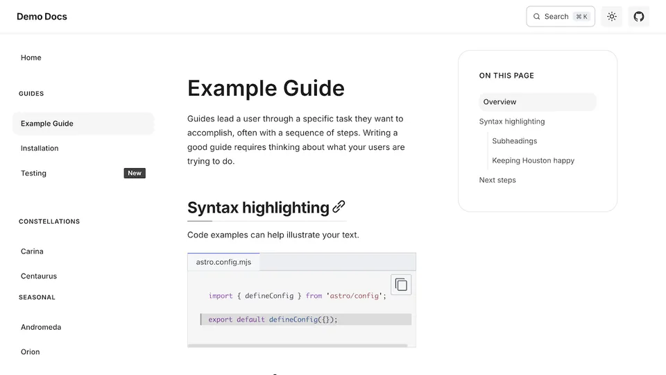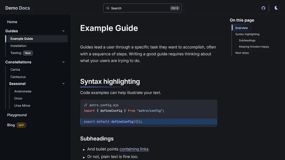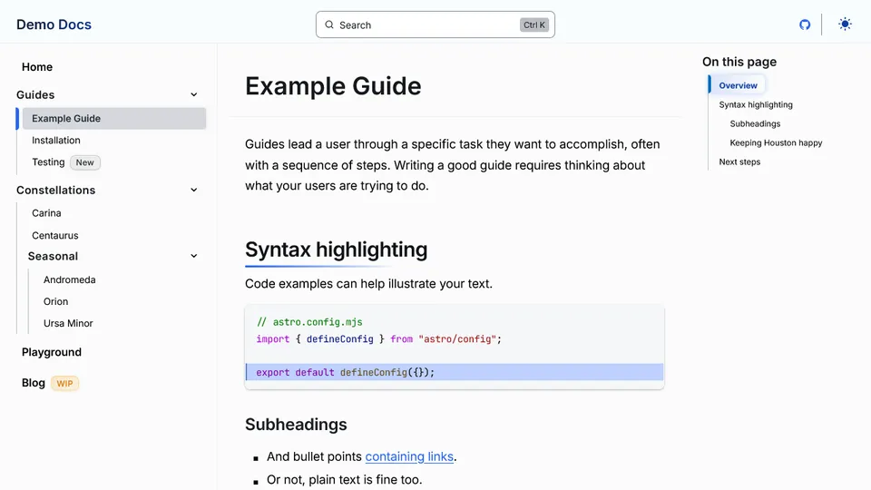 Ein Theme ist ein Starlight-Plugin, welches das Erscheinungsbild einer Website mit benutzerdefiniertem CSS, Komponentenersetzung oder anderen neuen Funktionen verändert.